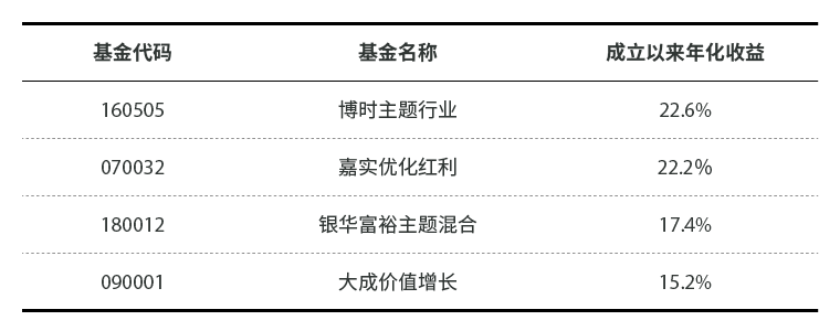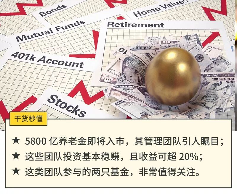 其实这类主动管理型的牛基,市场上还有很多,而且,可能比腾讯推荐的更稳。有多稳?就是稳到能帮国家打理养老金那种。众所周知,中国已经进入老龄化社会,养老金缺口很大。所以中央也在帮大伙想办法,用养老金做投资赚点钱。由于养老金牵涉到亿万国人的养老问题,所以这个投资是绝对不能亏的。于是人社保基金就从全国筛选了少数非常资深、非常稳健的基金经理,来做养老金的投资。之前社保基金也是这么玩的,结果,也确实是稳赚的……菜鸡怎么突然说起这事儿了呢?因为就在本周,人社部宣布,又将有5800亿资金进入股市。于是市场又都在谈论养老基金的投资风格和策略。因为大家都知道,这帮老司机风格稳健,且有特殊资源加持,很容易顺着他们找到稳赚的机会。最直接的机会,就是跟着他们一起买股票。市场上确实有很多人在猜,养老基金买了什么股票,是不是可以跟一跟。然而遗憾的是,信息披露有滞后,等大家知道养老基金曾买入某股票的时候,这个股票的价格可能已经比较高了。但是退而求其次,我们可以买和养老金投资策略类似的基金,等于变相买入他们投过的一揽子股票,可以说是妥妥的躺赚。这个怎么找呢?因为国家可没有披露这14家基金公司的团队,更没有披露他们的投资策略。这个难不倒想赚钱的老司机。第一,有人从上市公司季报里面,发现了6家基金公司养老金专户的影子。因为他们买着买着,就买成了十大流通股股东,必须做信息披露了。第二,老司机们还发现,其中的4家基金公司,有同样团队同样风格的基金,也上了前十股东。四家基金公司分别是:银华基金、大成基金、嘉实基金和博时基金。他们类养老金策略的基金,菜鸡也给挑出来了。成立时间都比较长,年化收益在15-22%之间,果然是又稳又赚。如果一定要在这个牛基里,再挑两个的话。可能就是前两个更厉害一点。因为这两只基金,投资比较分散。这种策略是为了分散风险,收益通常比较稳健,也往往比较低。结果这种稳健型的策略,收益反而更高,那确实是实力超群。而后两者过于集中在某些行业,不仅收益略低,且风险也要大很多。当然,基金投资总是有风险的,短期的波动不可避免。考虑到基金经理的稳健,超牛的历史业绩、以及特殊资源加持,这样的基金,已经是极少数值得考虑的优质标的了。如果你是一个长线投资者的话,这种追求长期、稳健收益的类养老基金,就更是首选了!因为如果你持有5年的话,按年化20%来算,总收益也高达150%!由于楼市被锁死,接下来几年里,这样的长线机会,还真是不可多得……发自我的 iPad