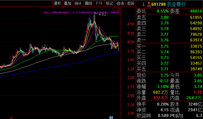 我看了眼组合里的股票,明天工农行如果再跌2-3%的话,我就出手捞个10%仓位。倒不是要和趋势较劲,确实是估值低,够便宜,6.3倍pe,0.9倍pb,今年现金分红率4.7%,过去几年都在4%以上,就算中国又变回前几年炒投机概念的风格,持有也不会吃亏。