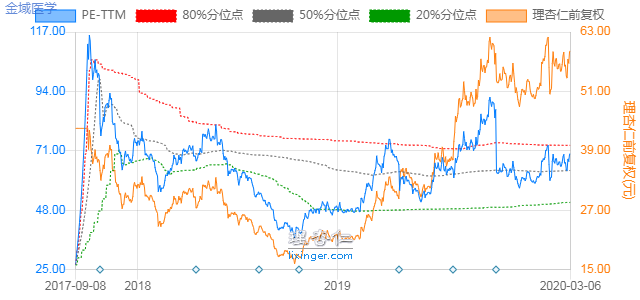 通俗一点说,就是医学实验室是大后期品种,前面得不断投钱发育,5年过后才能释放利润,后面利润会进入一个稳定增长期。2019年开始金域医学进入利润释放期,股价也跟着涨了3倍,估值到了将近100倍,可以说是万众瞩目。但是随后股价出现了调整,虽然调整幅度不大,但是调整到现在已接近半年,估值也到了一个比较合理的程度,但是大家早已将他遗忘在历史的角落里了。