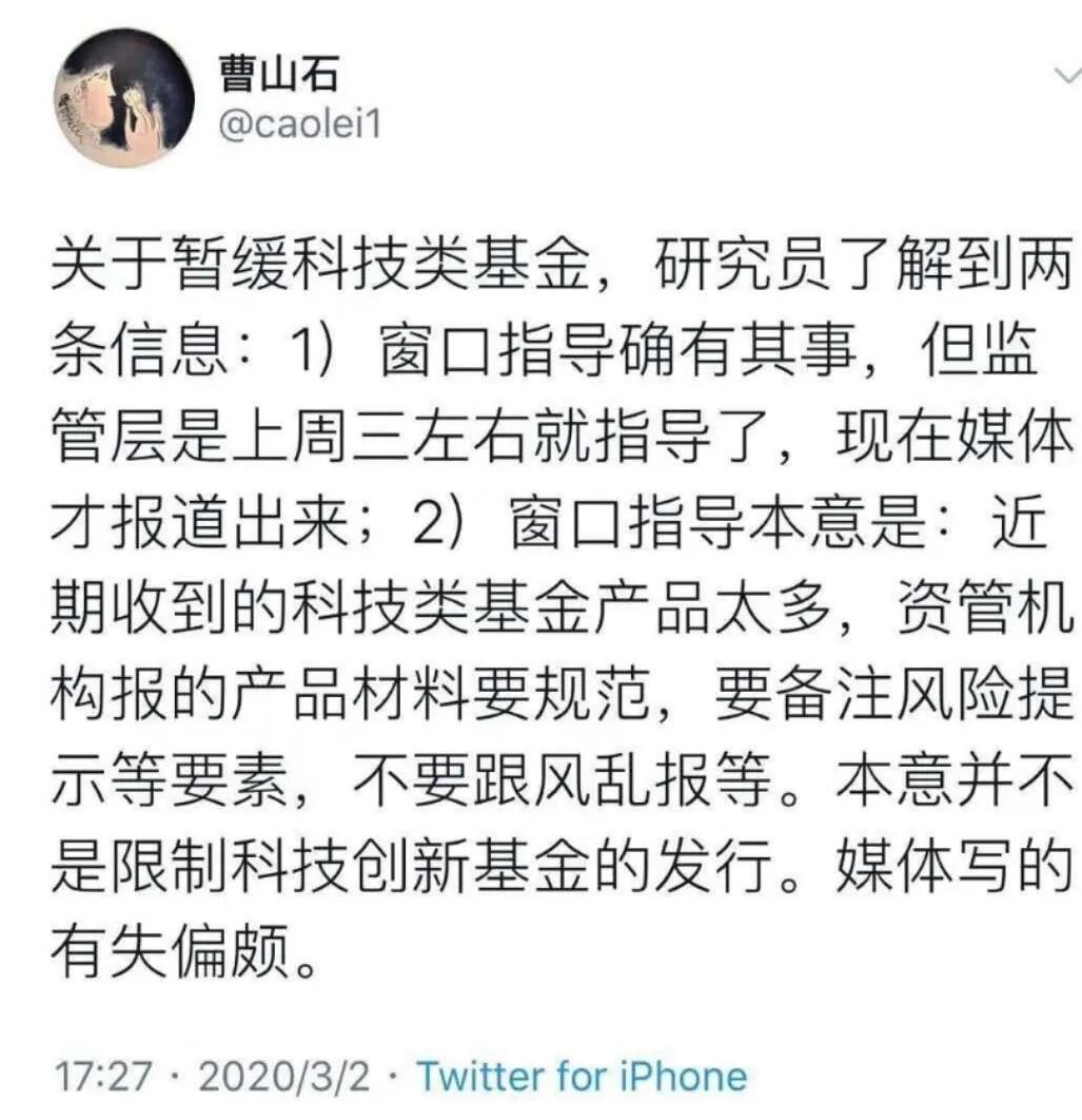 我自己去找了一个专门做这类项目的公募圈小伙伴打听,她转发了曹山石的推特给我,说曹山石的说法和她个人的观感是最接近的。