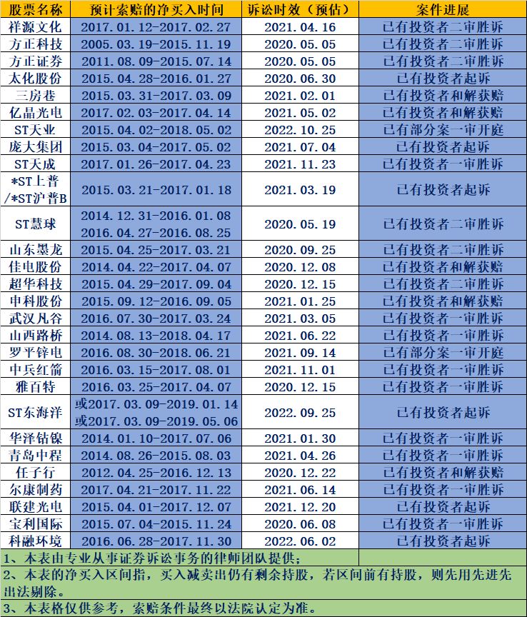 第一个要说的大事就是我联系好了证券集体诉讼的律师机构,对方给出了建议维权的股票案例,这些通常都是已经维权有进展的,所以符合条件的股民只要报名了,通常都有结果。