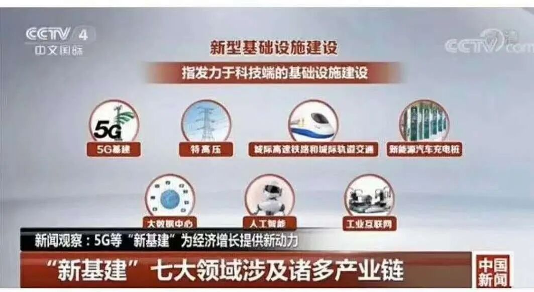 今天市场开始普遍关注新基建,什么是新基建呢,其实CCTV已经划好重点了。