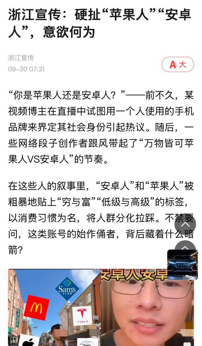 很多人说户晨风通过"苹果安卓论"把人分成三六九等,我认为你们误会户晨风了。 户晨风并不是想把人口分为"苹果人(高端人口)"和"安卓人(低端人口)",而是想把人口分为"苹果人(反贼)"和"鸿蒙人(小粉红)"。 只不过,"鸿蒙"这个词,在中共国的社交媒体上是敏感词,他不敢提"鸿蒙"这个词,因此他只敢提"安卓",用"安卓"指代"鸿蒙"。 如果户晨风真的把"鸿蒙"这个词说出来,他的问题就不是封号这么简单了,而是会被CCP抓去坐牢了。 所以,我希望大家理解他一下,很多人明显没看出他的难言之隐。