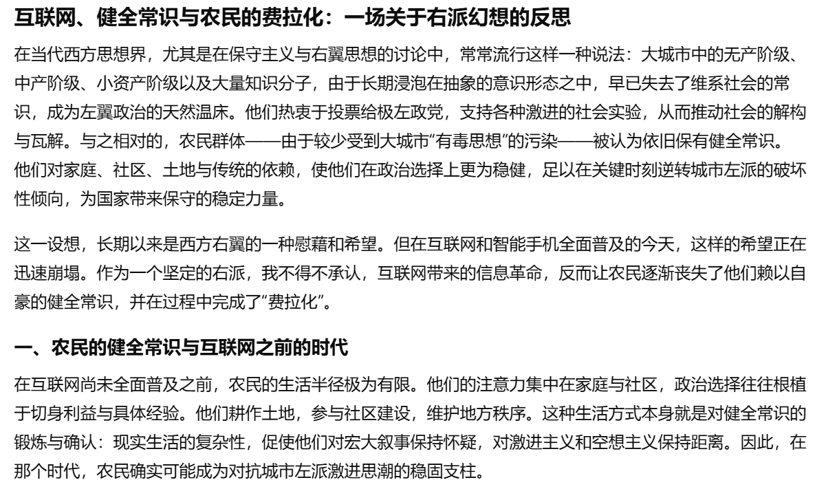 10月 2日我关于互联网、健全常识、知识分子、农民和费拉化的思考,使用ChatGPT写成一篇文章。