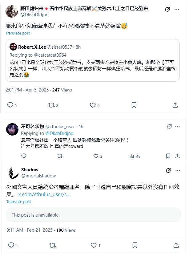 全球主义费拉右、改开温中、东百亚蠕虫满支、二刺螈小鬼,四坨在十年前看起来不会有什么关联的物体如今在对全球最上等人评头论足(以及碰瓷)上确实做到了一致的顶级抽象。川普作为探针和催化剂,充分展示了中华边缘人对核心的隐秘倒反天罡欲望。