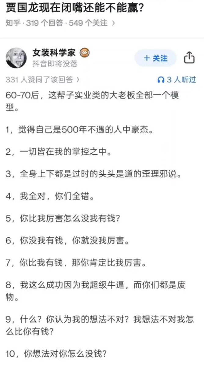 盛京贤弟呀!你这样不行, 你听我的 ,谈个女朋友,再分期来套大平层烂尾房 ,整个新能源车,炒炒股、投个资、品品茶,花点聘礼再简简单单办一场世纪婚礼,婚后生几个孩子,再把孩子都送出国留学,这日子不和和美美吗?