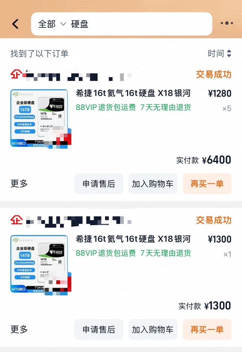 搜了一下吓一跳,最近hdd怎么涨那么多!去年夏天1050买的4块16T完全就是抄底价啊。