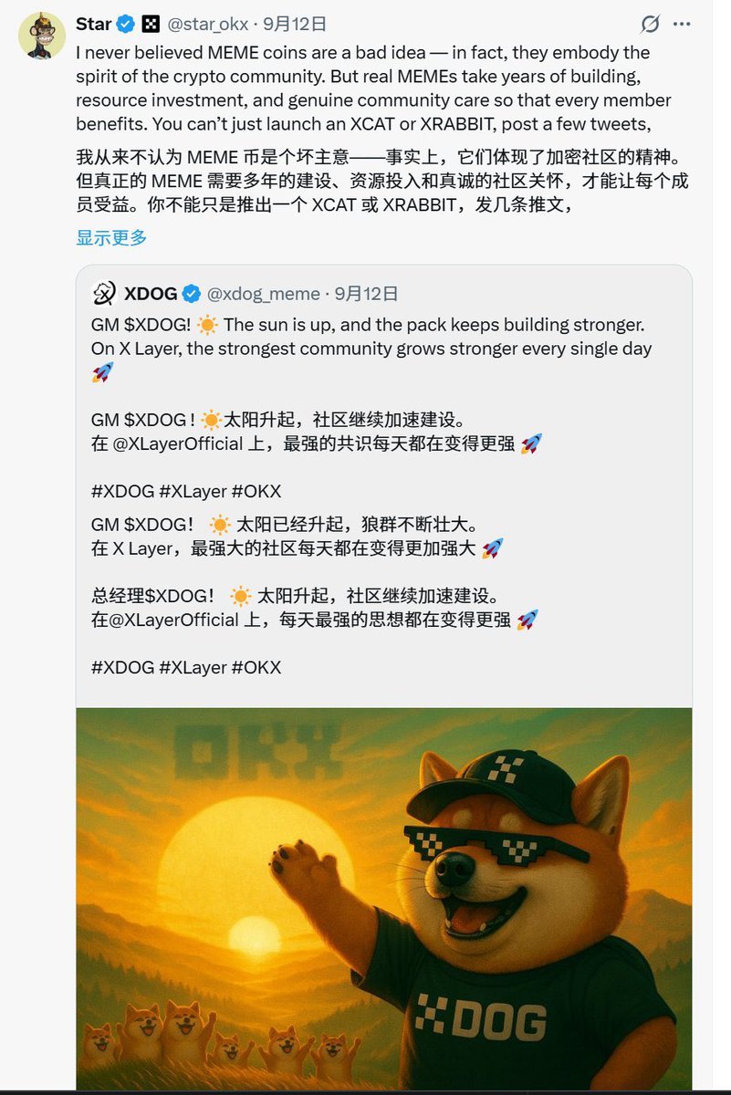 完全不知所云,第一,欧意的重心放在了技术上,自家meme并非他的最重要方向,为什么被卡脖子,是因为X-layer还没有多少人玩,ave gmgn不必为此特意开一个"频道"; 第二,他既没肯定meme,也没否定meme,这招财只是他旗下员工的一条推文而已,关他屁事? 第三,我从头到尾除了bsc的meme以外,其余买卖meme都在用okx钱包,并且分析地址也是okx简单便捷,即便okx手续费相当高,为什么?因为用过binance钱包,相当不好用。而这也体现了俩家对于技术上的要求差异。 @star_okx
