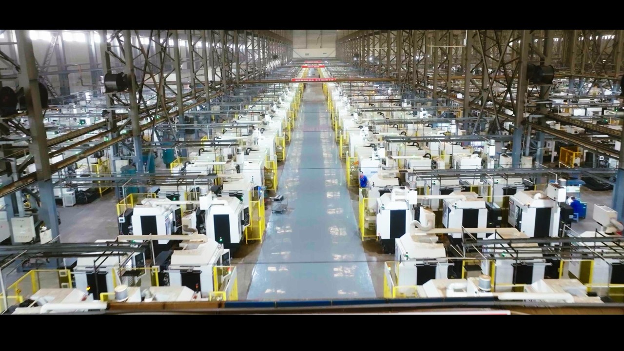 This is a room with >2000 CNC mills near Shenzhen that I've been inside. The mills are arranged in cells with multiple tended by a robot on tracks, so there are very few people working on the floor. There are dozens like this in China. What's the biggest similar facility in the US?