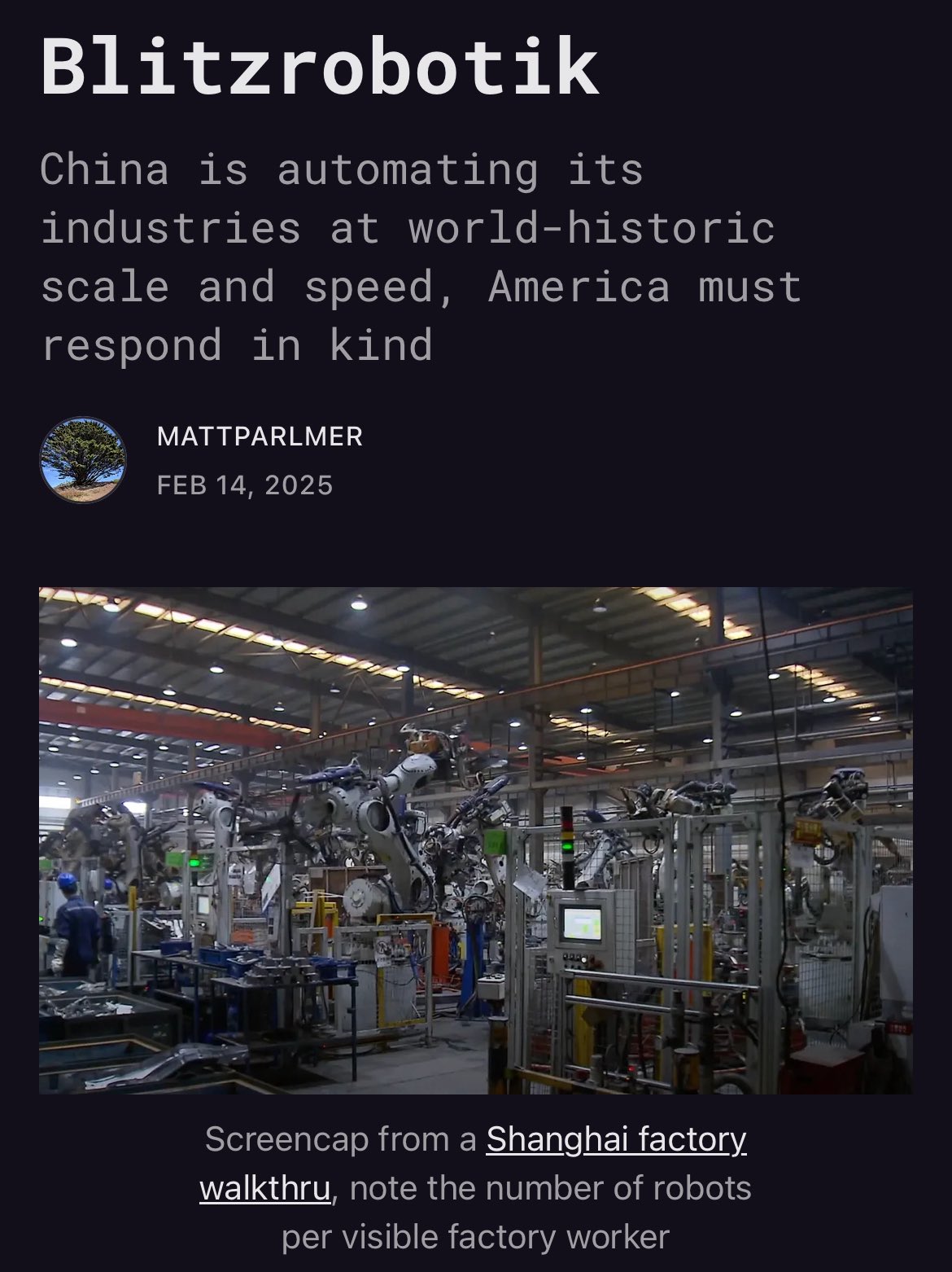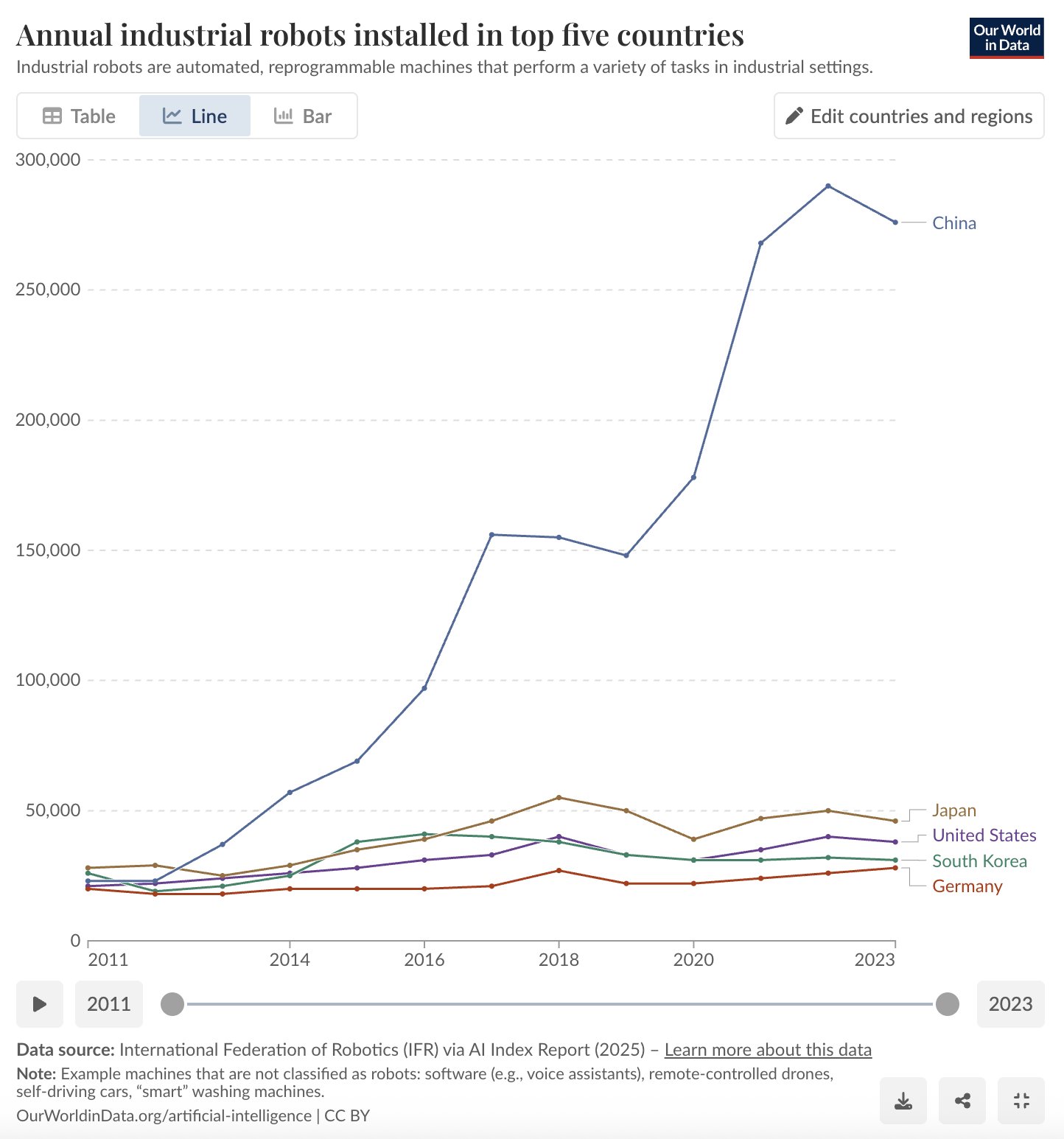 In 2023, China installed 276,000 robots. America installed 38,000. We can't let China win the robotics race.